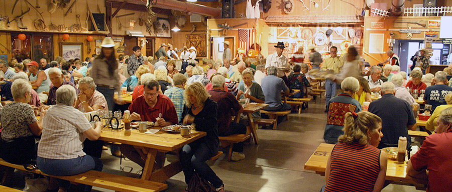 Arrive in plenty of time before dinner to enjoy the Western town featuring a museum, Old-Tyme photo studio, shooting gallery, ropin’ lessons, tractor pull, saloon and Western shops that line the boardwalk.”