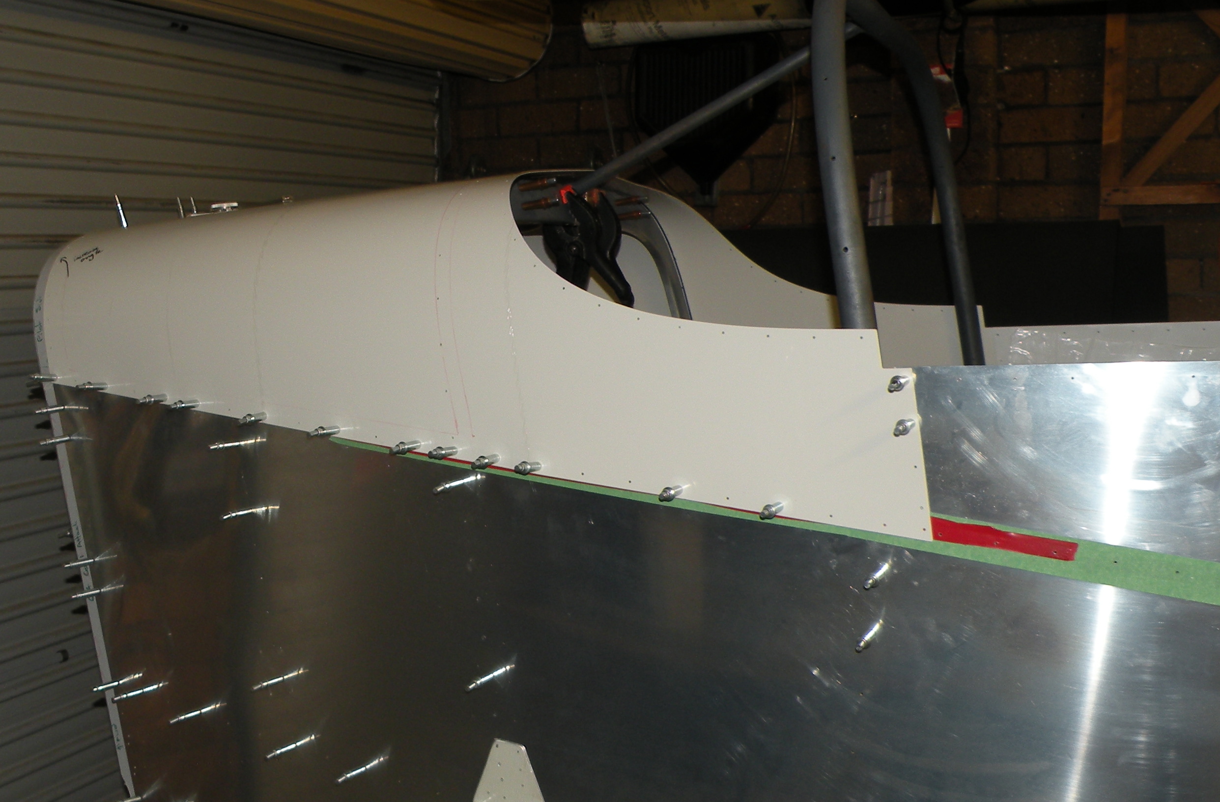 OK so the reason for the fuel filler being on the left remains a mystery but I have managed to do some work on the tail this week and of course that means new questions. Also attached is a picture of how I beefed up the fitting for the tail landing gear attachment. I have tried to keep weight low and not make it too much bigger but hopefully it will do the job. As has been reported by others extending the fitting out to the lover longeron and attaching it with a couple of screws should make it much tougher. I also wanted to check how, if at all, the WL42 longerons are joggled to fit the stabilator hinge brackets? I can't find a drawing showing enough detail to make it clear to me what I do in this area. However unless I do something the skin won't sit flush just forward of the fitting. Also I am not sure I have interpreted the drawing changes on the 576 drawing correctly. John Thorp made an alteration to the 576 bulkhead as well as the 582 doubler that carries the trim jackscrew bearing however the 576 drawing was never updated with all the detail. So my question is should the heads of the 4 screws that hold the trim jack screw bearing come through the 576 frame? You can see in my photo that I haven't got them doing that, but as I went to assemble them it sort of made sense. Any suggestions?